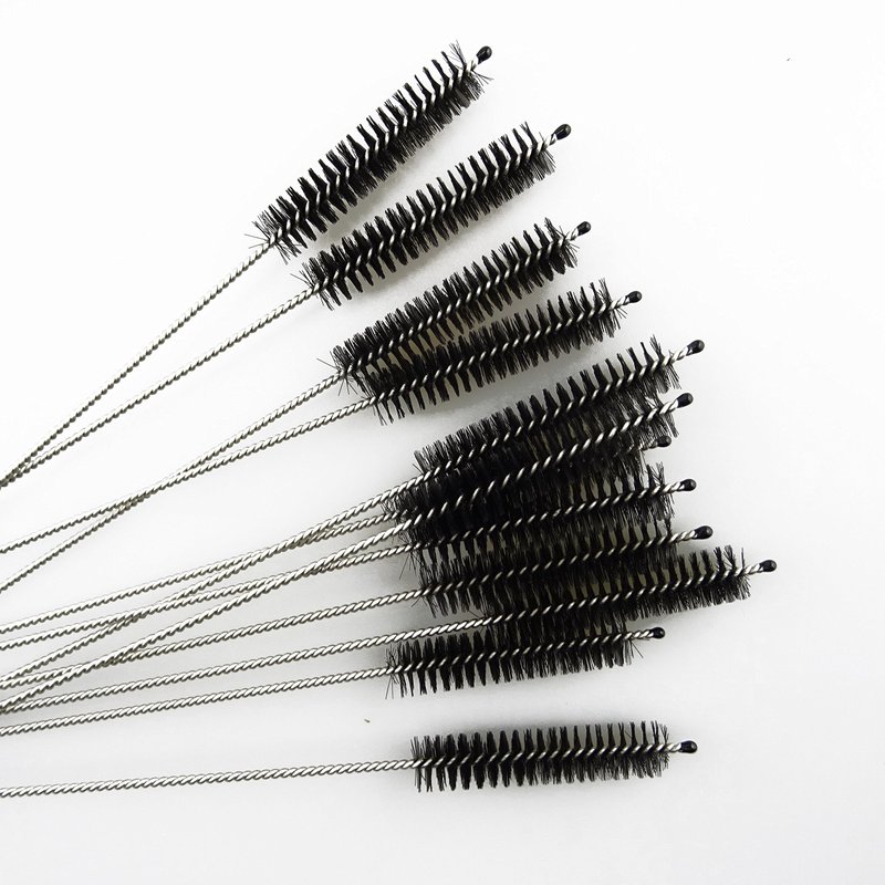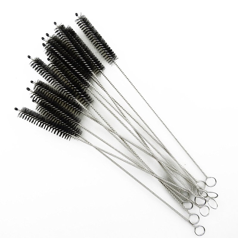 Honbay 12PCS Straw Cleaner Brushes, Super Soft Nylon Bristles and Stainless Steel Handle, Nylon Skinny Pipe Tube Cleaner - 10mm bristles x 200mm long (Black)