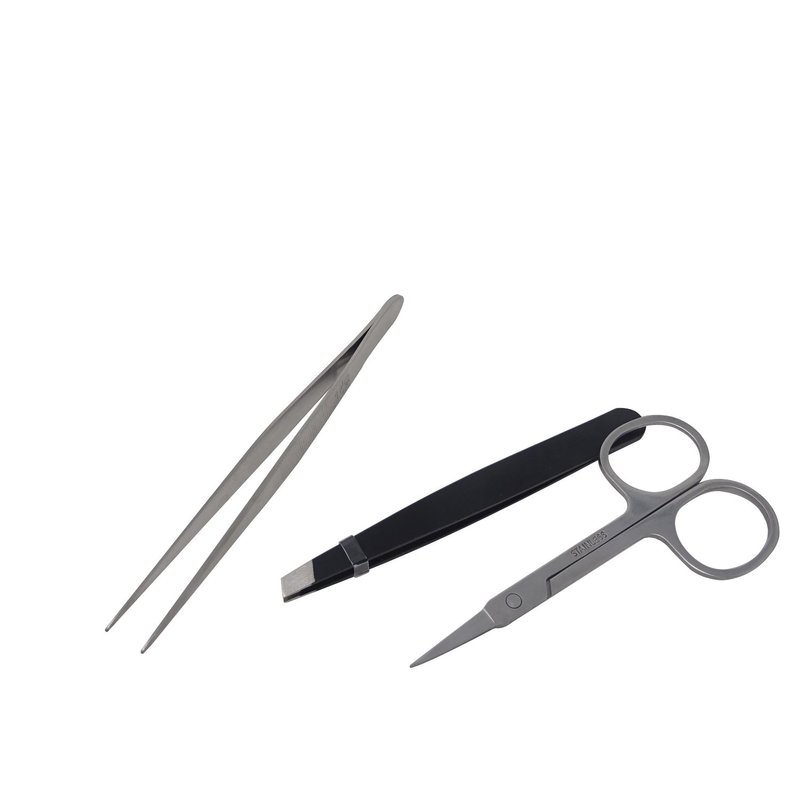 - Package included: 1pcs black slanted flat head tweezer + 1pcs pointed tip tweezers + 1pcs facial hair scissor