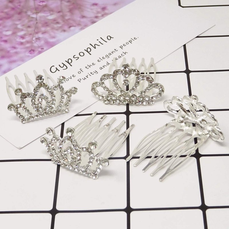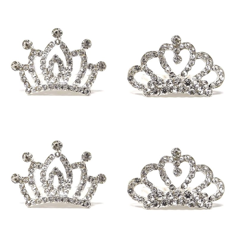 - Package includes: 4pcs mini crystal crown hair combs