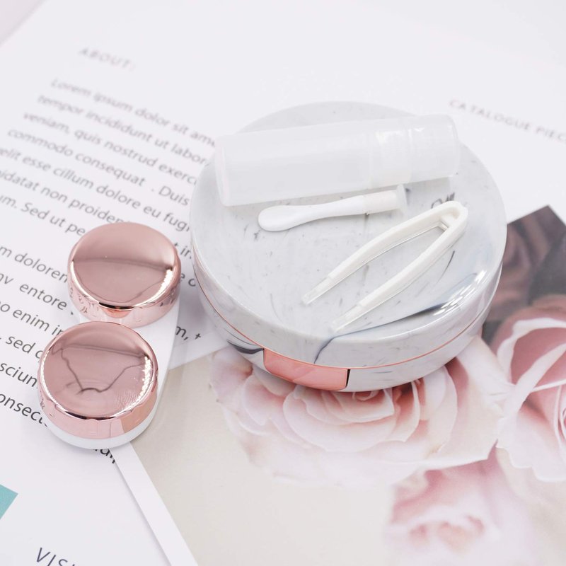 Honbay Fashion Marble Contact Lens Case Portable Contact Lens Box Kit with Mirror (Round) (Rose Gold)