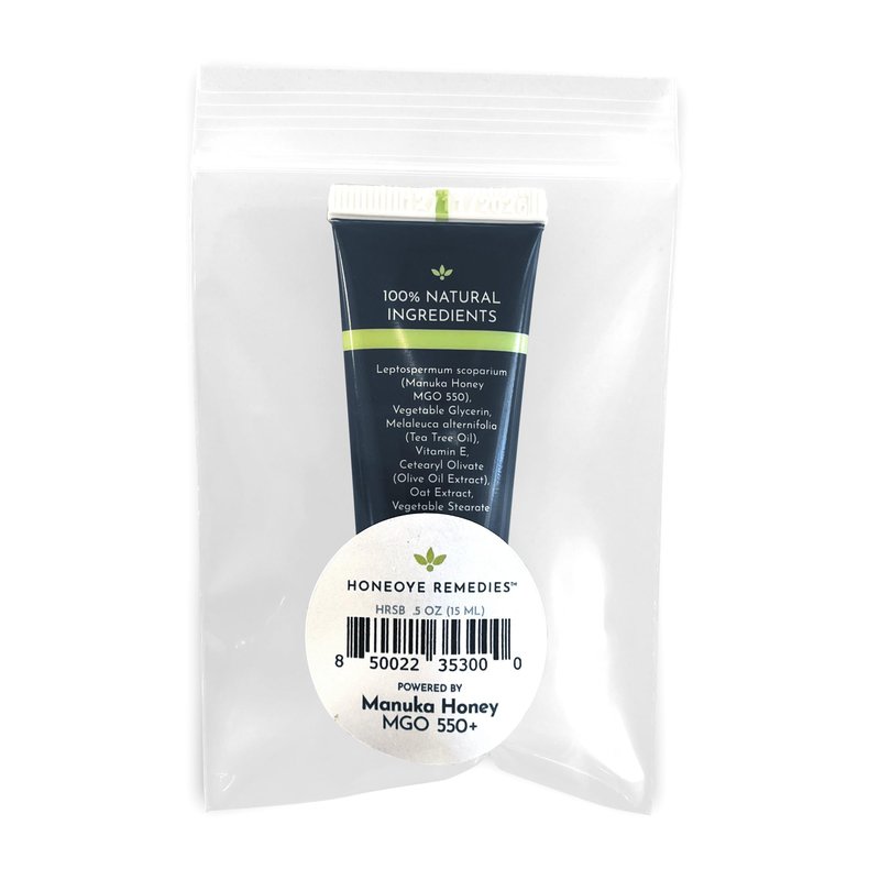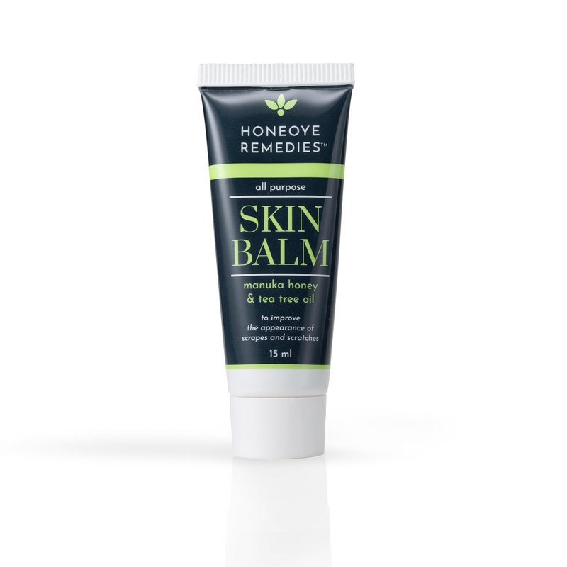 Honeoye Remedies Skin Balm Travel Size [0.5 oz / 15 ml] | Manuka Honey [550+ MGO] & Tea Tree Oil Moisturizing Cream for Intensive Repair of Dry Skin, Scrapes, Cuts & More | 100% Natural