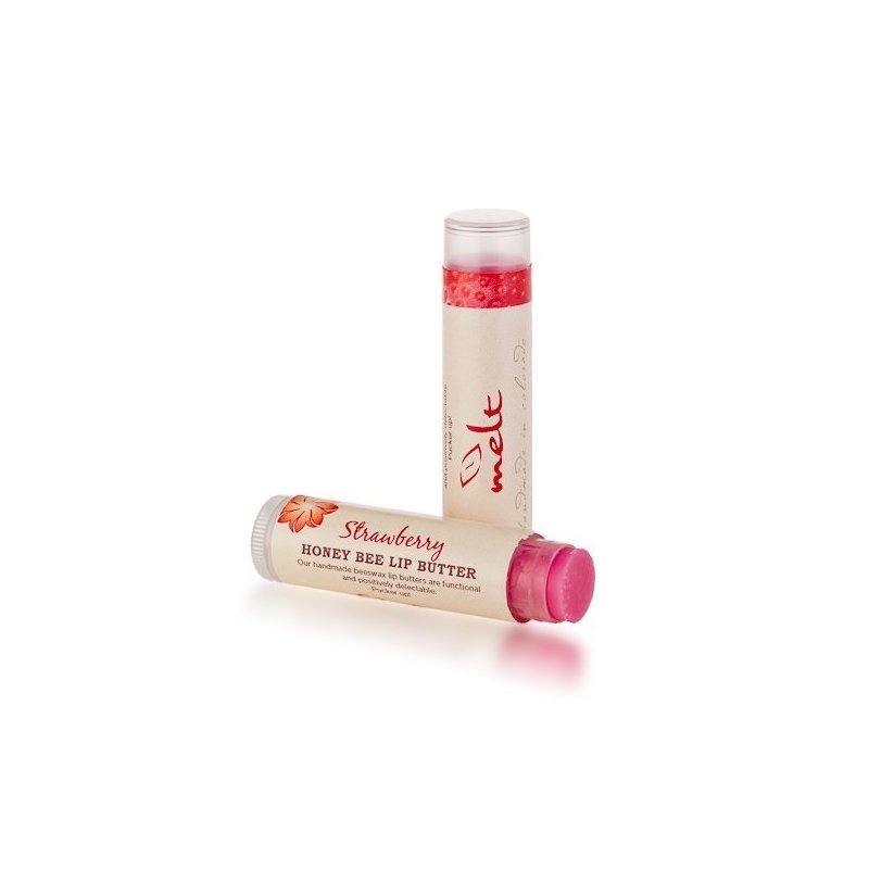 Service your own delicate lips with the delectable and functional MELT HONEY BEE LIP BUTTER. Packed with skin softening oils and butters, this natural hand made product will make you (or perhaps someone else) want to lick your lips all day! INGREDIENTS: beeswax, mango butter, almond oil, grape seed oil, virgin coconut oil, cocoa butter, shea butter, olive oil, jojoba oil, castor oil, flavor oil, and vitamin E.