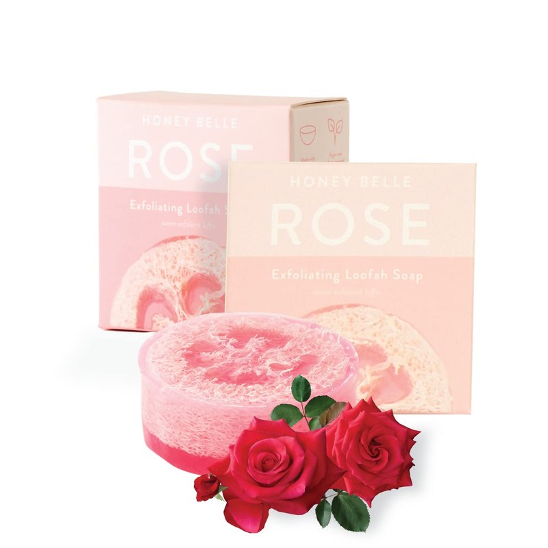Honey Belle Natural Loofah Soap Bar 2-Pack | Nourishing Skin Scrub Exfoliating Soap with Loofah Inside | Eco-Friendly, Moisturizing, All Natural Soap with Loofah Built In Paraben-Free (Rose)