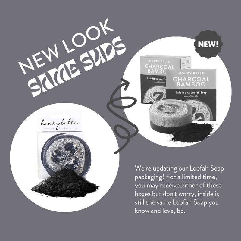 Honey Belle Natural Loofah Soap Bar 3-Pack | Exfoliating Soap with Loofah Inside | Eco-Friendly, Natural Soap with Loofah Built In | Sandalwood, Eucalyptus Peppermint & Charcoal Bamboo