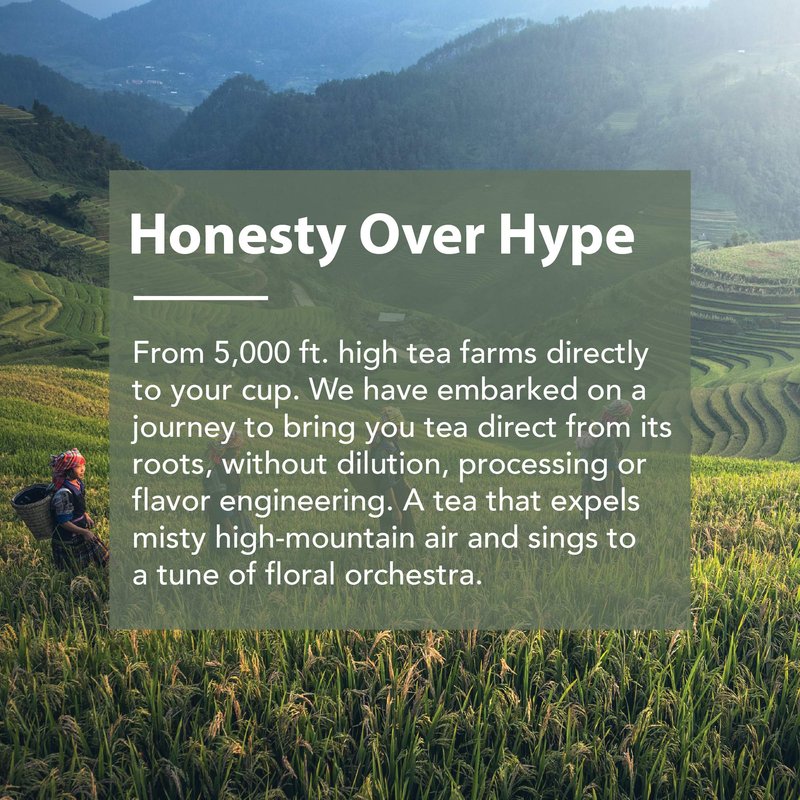 - CRAFTED TO PERFECTION: A tea that expels misty high-mountain air and sings to a tune of floral orchestra. We are here to let tea farmers share their value through their lens, and their soul through the art and craft of tea making.