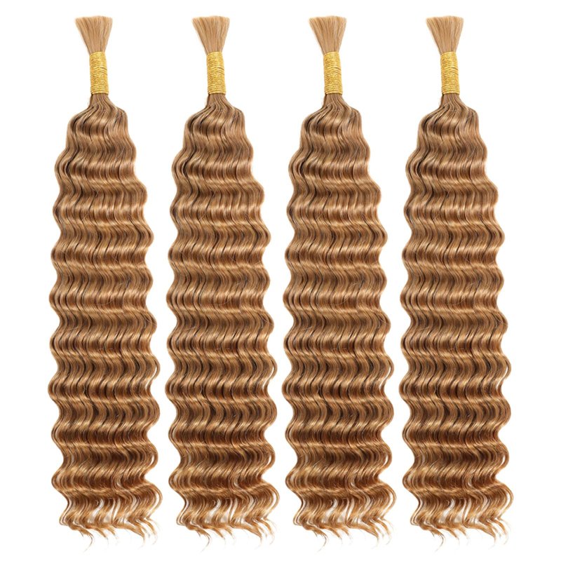 Honey Blonde Human Braiding Hair 24inch 1 Bundle #27 Blonde Deep Wave Bulk Human Hair For Braiding Deep Wave Human Braiding Hair Deep Wave Bundles Human Hair Bundles Remy Human Hair Extensions