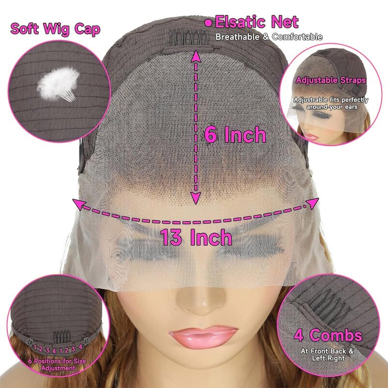 - 🎀Specifications of Wig Cap: The wig cap of this body wave lace front wigs human hair is made by half machine weft & half hand woven. Average size (21.5 - 22.5 inch). Fit well & easily install and caring. Lightweight and breathable. 4 combs and adjustable straps -easy to adjust, comfortable, and breathable to wear. 2 inches lace on the back makes our honey blonde body wave wig more suitable for ponytail