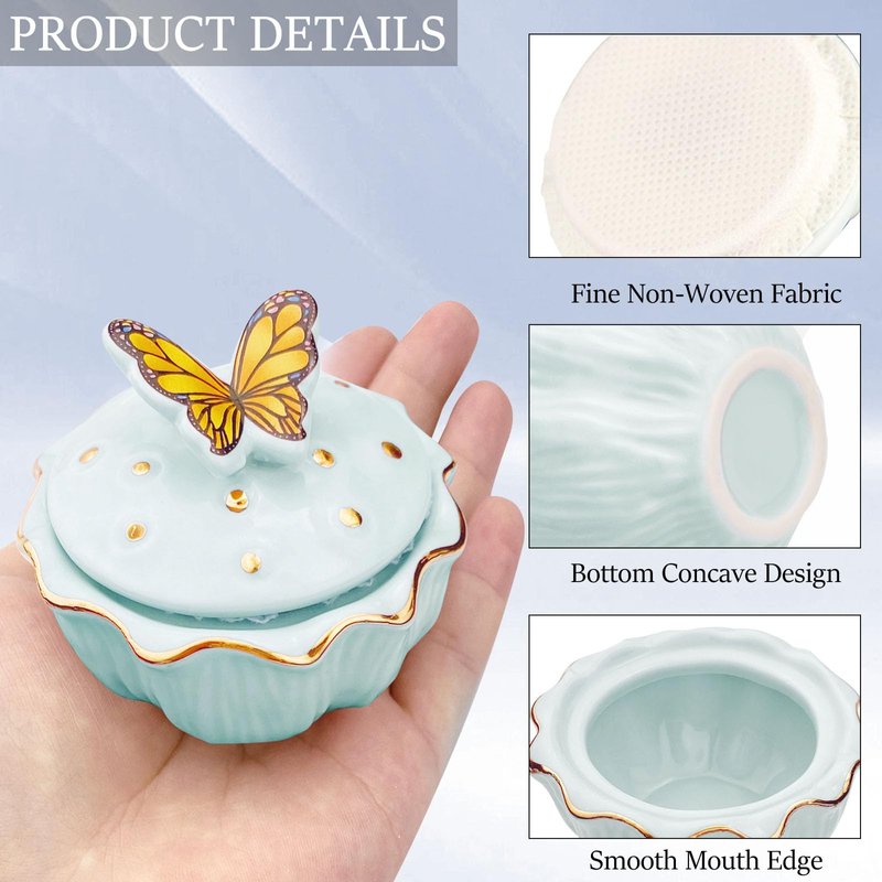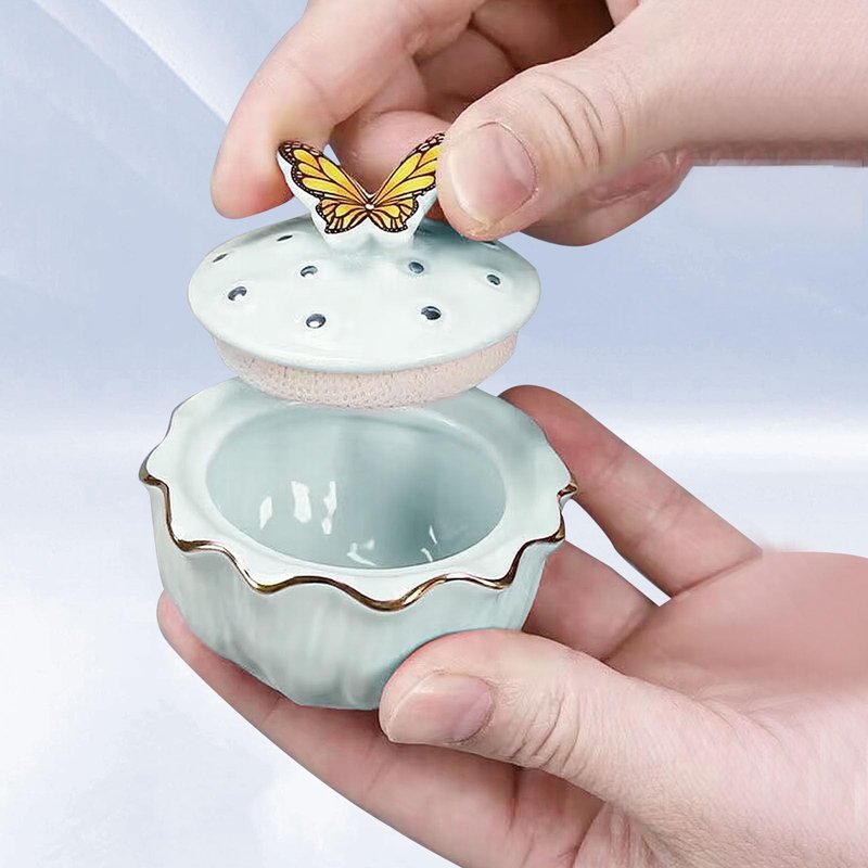 - Chinese Style Design - Flower Shape Acrylic Dappen Dish with Butterfly Brush Holder; Made of Green Ceramic Body with Firm Cloth Wrapped Cap, which can better aovid Liquid Volatilizing