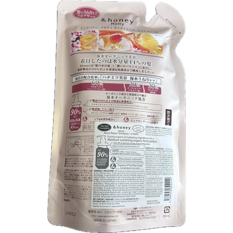 &honey Melty Moist Repair Shampoo 1.0 440ml And Refill 350ml Deep Nourishment and Revitalization - Organic Ingredients Perfect for Frizzy, Wavy, Curly Hair