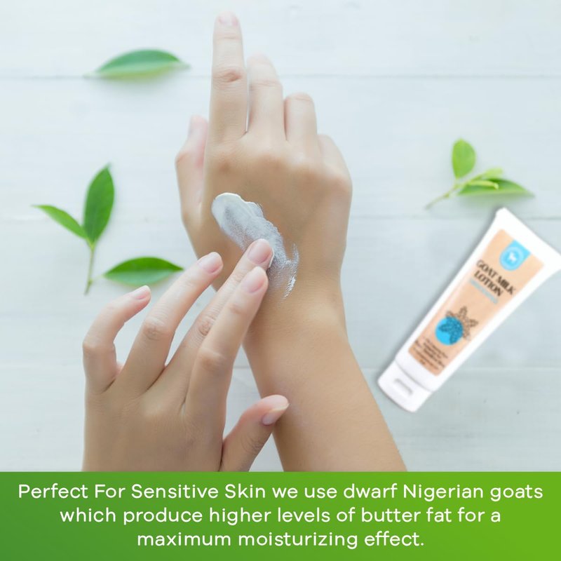 - Experience true luxury with our fresh-from-the-farm goat milk hand and body lotion, our Nigerian Dwarf Dairy Goats Milk contains Vitamin A, C, and E, several B vitamins, amino acids, and natural enzymes to help with skin problems such as dryness