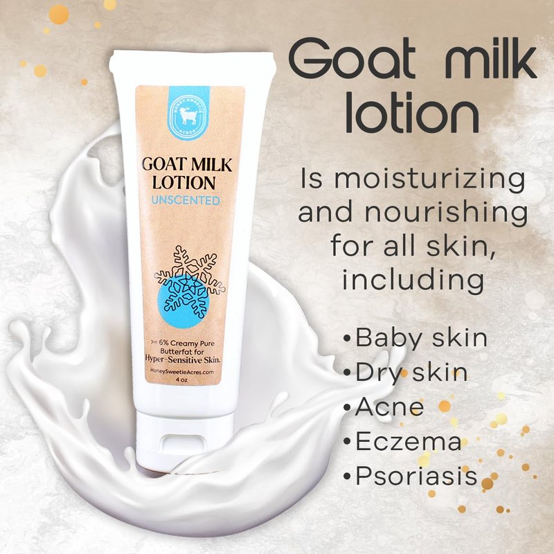 - Honey Sweetie Acres goat milk lotion is made from farm fresh milk for increased moisturizer milk properties, many clients apply it under their makeup or just before bedtime to help with tough dry skin spots