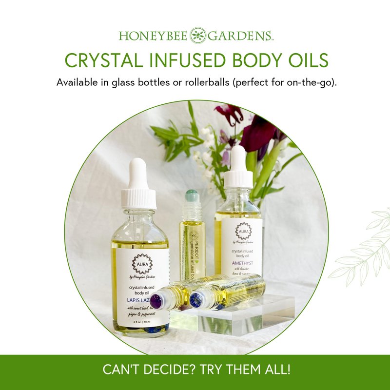 - Organic skin-soothing oils combined with aromatic essential oils create deeply moisturizing, fragrant body elixirs suitable for all skin types. Each oil, infused with healing powers of genuine crystals, will clear your chakras and promote your well-being.
