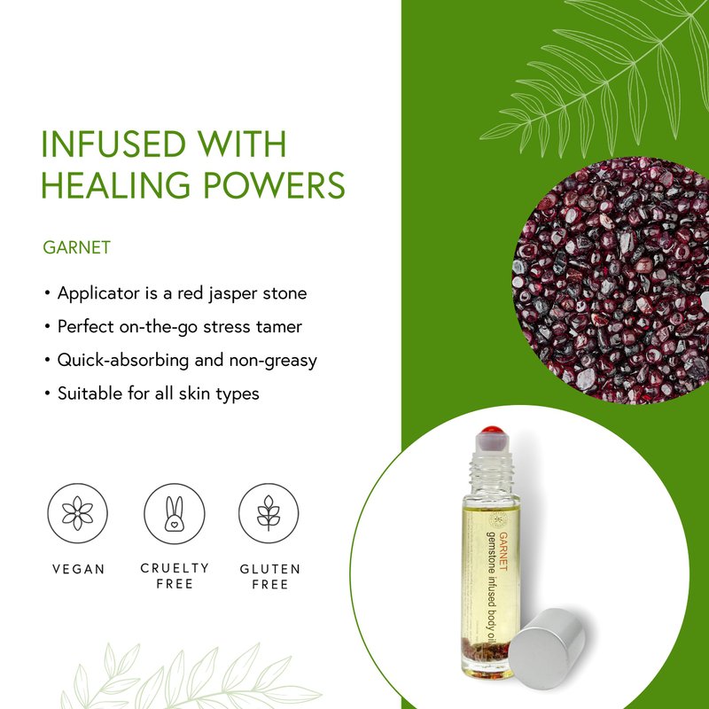 Honeybee Gardens Crystal Infused Body Oil ROLLERBALL - Garnet, 0.34 fl oz.,