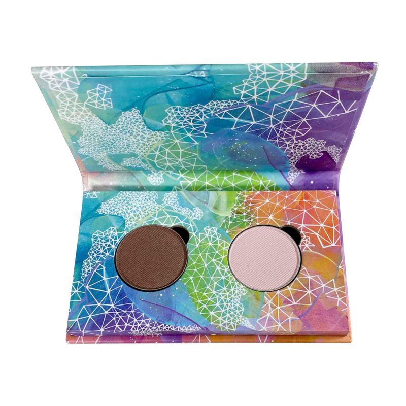 Honeybee Gardens Mini Skinny Duo Eye Shadow Compact in Tippy Taupe and Porcelain, Longlasting, Refillable & Customizable, Vegan, 26mm Pans