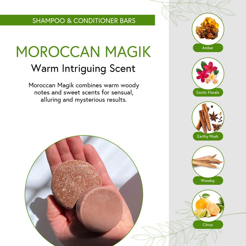 - A complex and intriguing scent, Moroccan Magik combines warm woody notes with sweet scents of amber, exotic florals, earthy musk and a slight hint of citrus. The scent is sensual, alluring and mysterious.