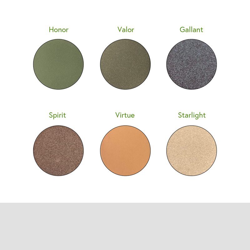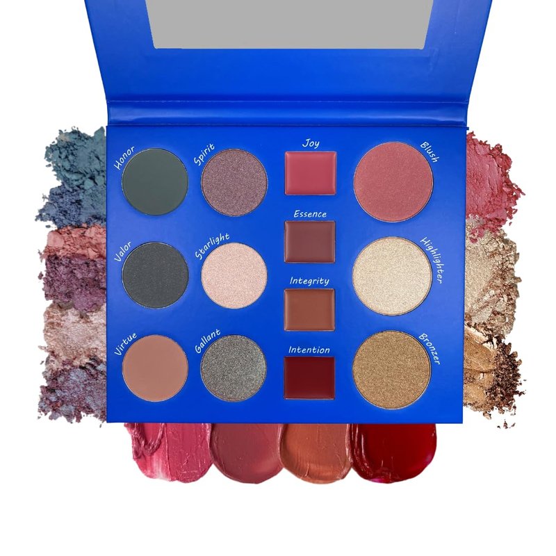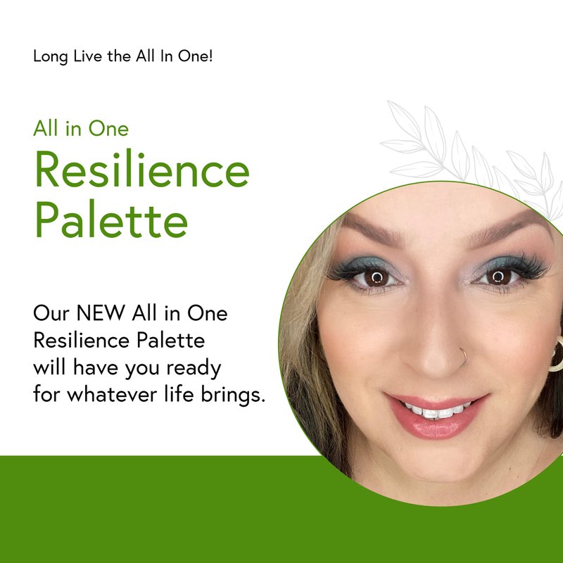 No matter what comes your way, you are ready to face it head on. Our NEW All in One Resilience Palette will have you ready for whatever life brings. Contains 3 velvety matte eyeshadows, 3 shimmer eyeshadows, 4 buttery lipsticks, a blush, highlighter and bronzer. The original art on the cover of this palette is richly empowering. V, GF