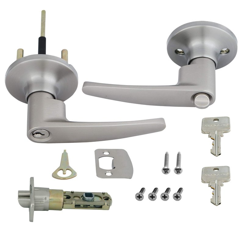 Honeywell Safes & Door Locks - Interior & Exterior Straight Lever Door Handle with Keys - Door Lever for Bedroom - Anti-Bump Resistant - Reversible for Right & Left Sided Doors - Satin Nickel, 8104301