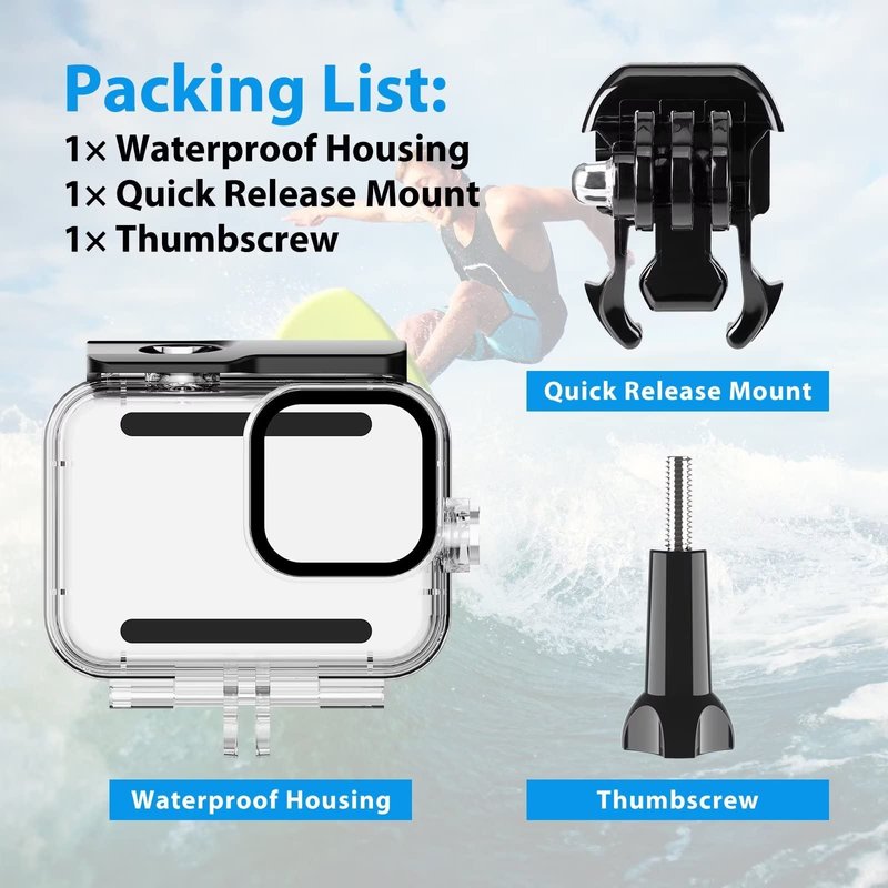 - 【Compatible with Gopro Hero 9/10/11/12】: Perfect for GoPro Hero 9/Hero 10/ Hero 11/ Hero 12, When you insert your camera, you can also easily operate the power button or mode button. It fits perfectly and seals tightly, provides ultimate protection for your action camera during deep-water diving and extreme outdoor activities like surfing, diving, snorkeling, skiing, drifting, skydiving cycling, etc.