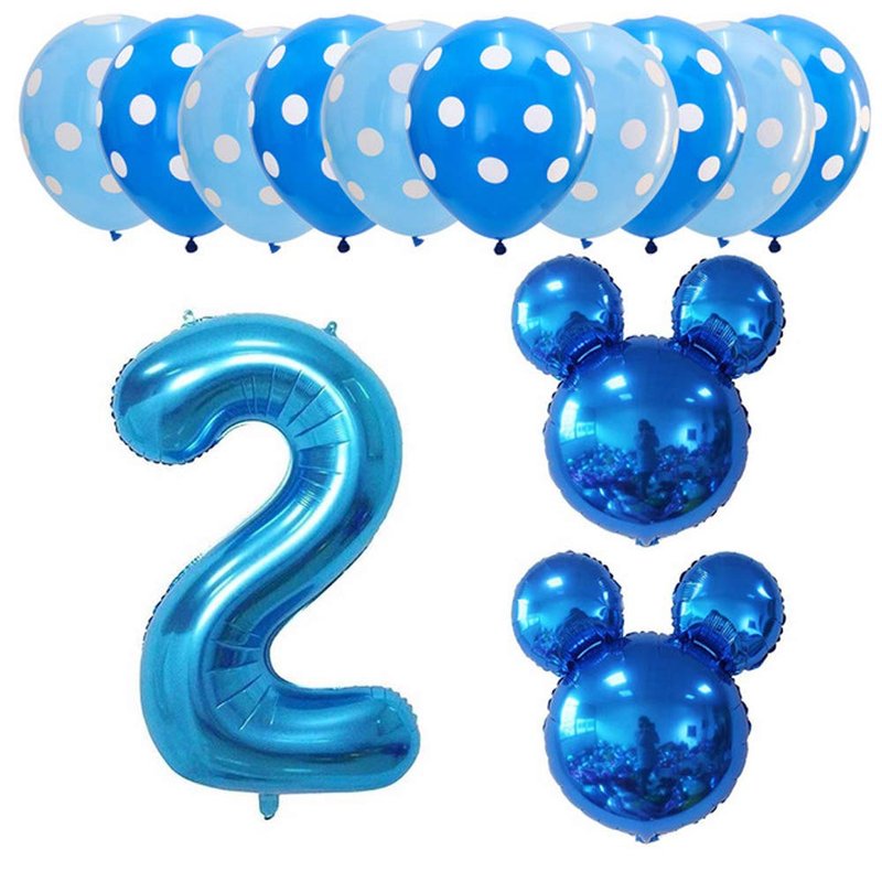 - Value Mouse Party Supplies: 1*32 number 2 foil balloons, 2pcs big mouse head foil balloons, 10pcs bule point latex balloons Applied for Wide Occasions: You could use this wonderful kit to decorate your kid s 2nd birthday party