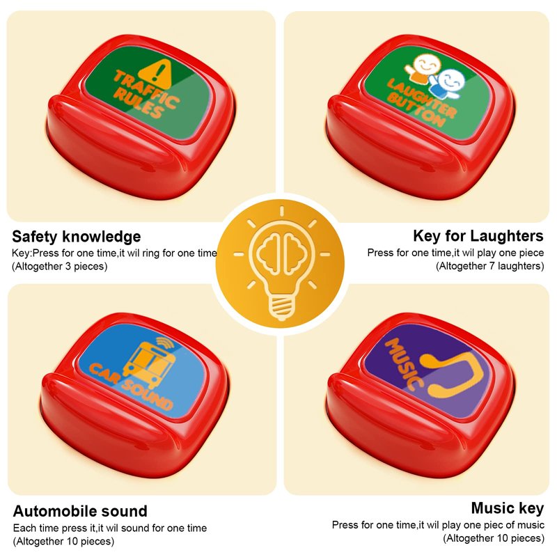 - 🚌Music and Lights: 4 buttons, each with different content and sound effects. And the bus contains early childhood knowledge for children, so that children can learn on the school bus. Contains 10 word teaching, 10 pieces of music and 3 greetings.
