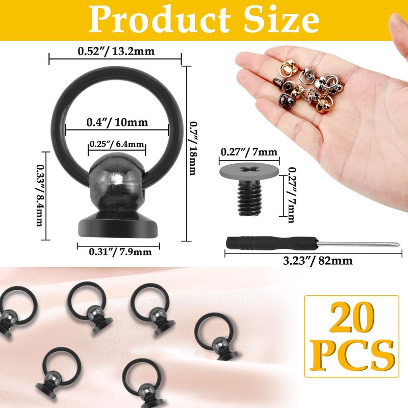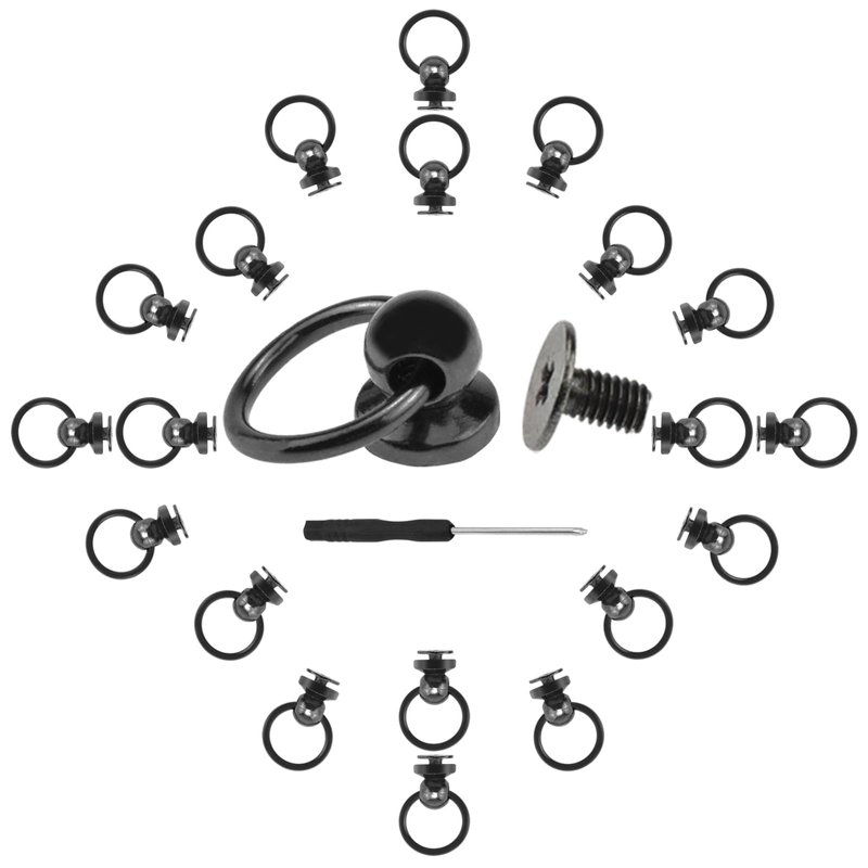 - 【WHAT YOU WILL GET】20 pcs black round head rivet studs with pull rings and 1 pcs mini screwdrivers.