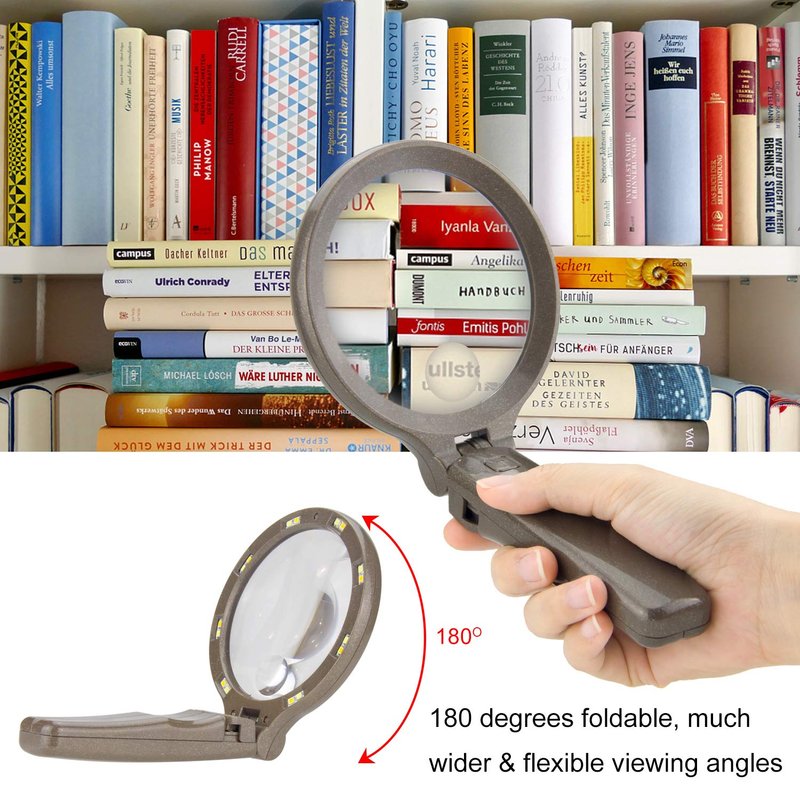 - ►[3X 5X Lens Magnification with 180°foldable]--With 3X 5X Lens Magnification, and can 180°foldable, much wider and flexible viewing angles ,is well designed for people with low vision to do crafts, hobbies, read books, maps, magazines, miniatures, jewellery or inspection.Will meet your needs.