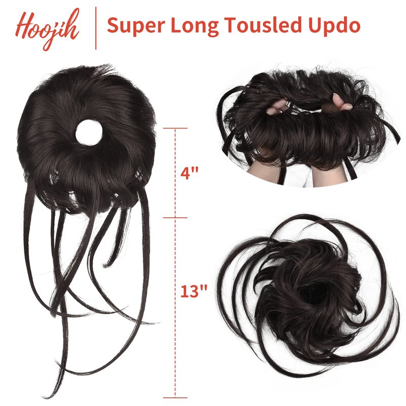 - Special Super Long Tousled Updo Hair Bun: The HOOJIH new hair bun extensions consists various hair length from 6" to 12”and features cascading tendrils