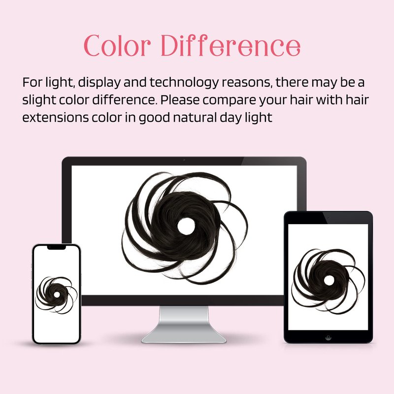 - Please Note: Due to the screen resolution settings, you may see some slight differences between the color tone of the hair extension in the photos and the actual hair bun scrunchies