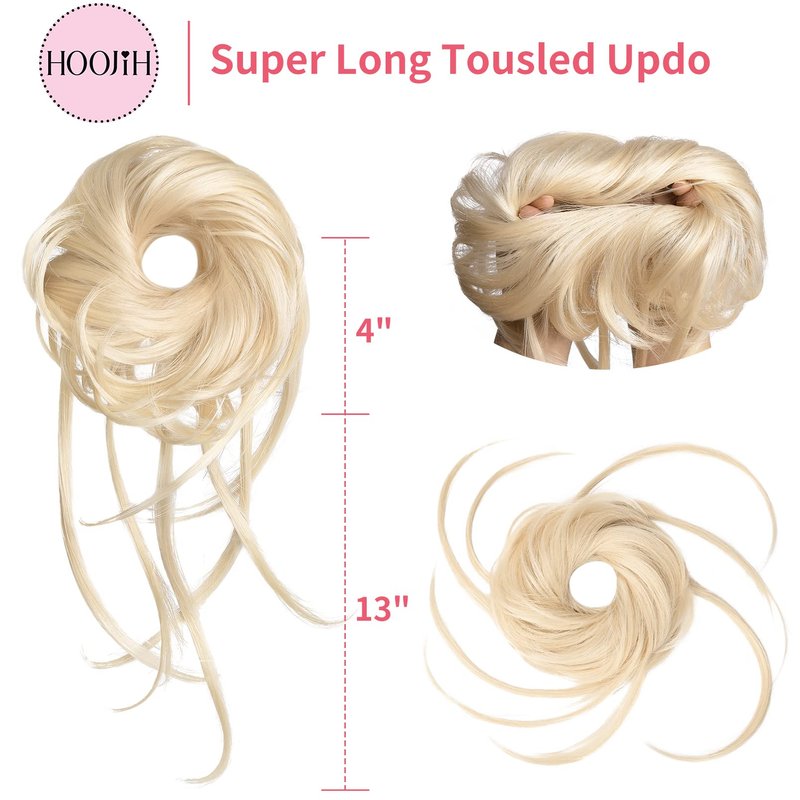 - Special Super Long Tousled Updo Hair Bun: The HOOJIH new hair bun extensions consists various hair length from 6" to 12”and features cascading tendrils