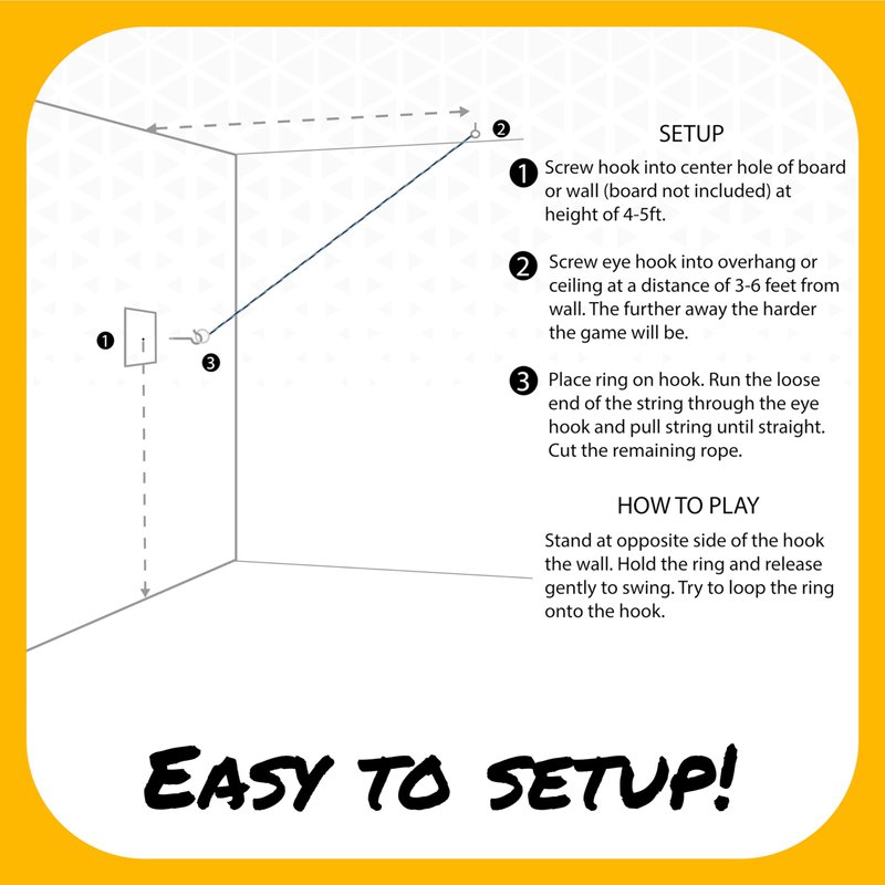GetMovin’ Sports Hook and Ring Swing DIY Kit Stainless Steel Hardware and Nylon String Ring Toss Game Indoor – Outdoor for Endless Hours of Fun!
