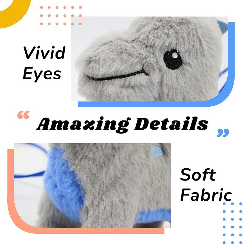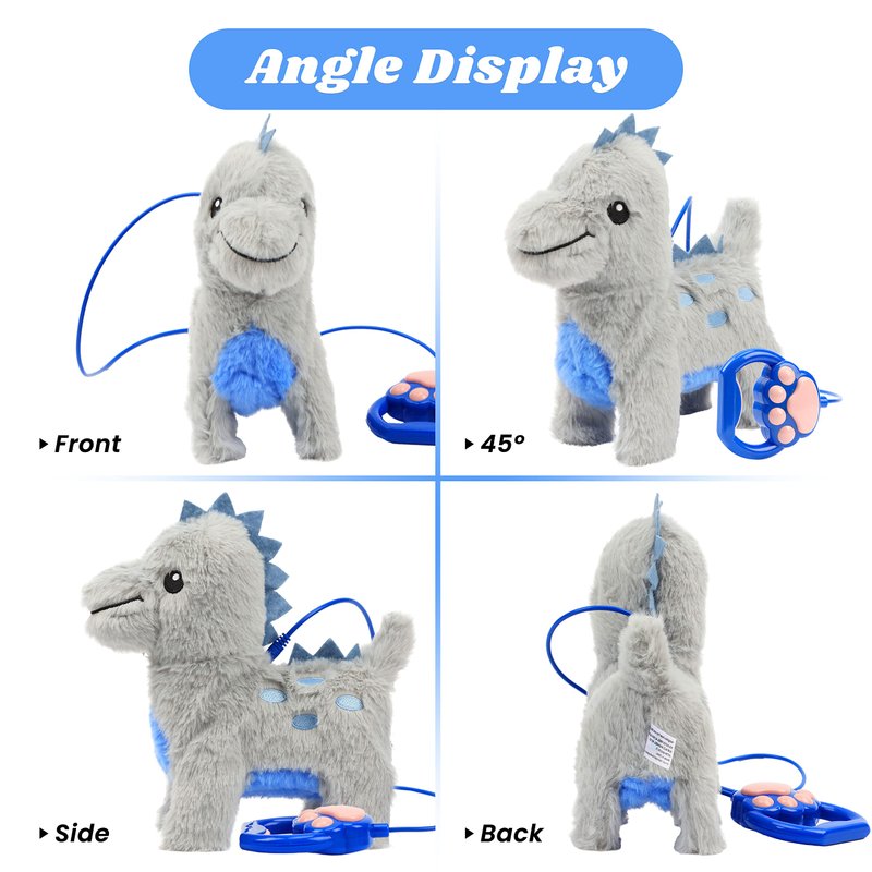 - SINGING AND WALKING: This is a vivacious dinosaur led by a leash, it features with barking and walking. When you touch its head, it will roar to you, it’s a dinosaur like purring. If you try to press the switch on the leash, you will find it will sing and walk to you, press again, it will stop, again, it will change to another song. It contains 10 songs in total. It is a good dinosaur to make your child happy after opening switch.