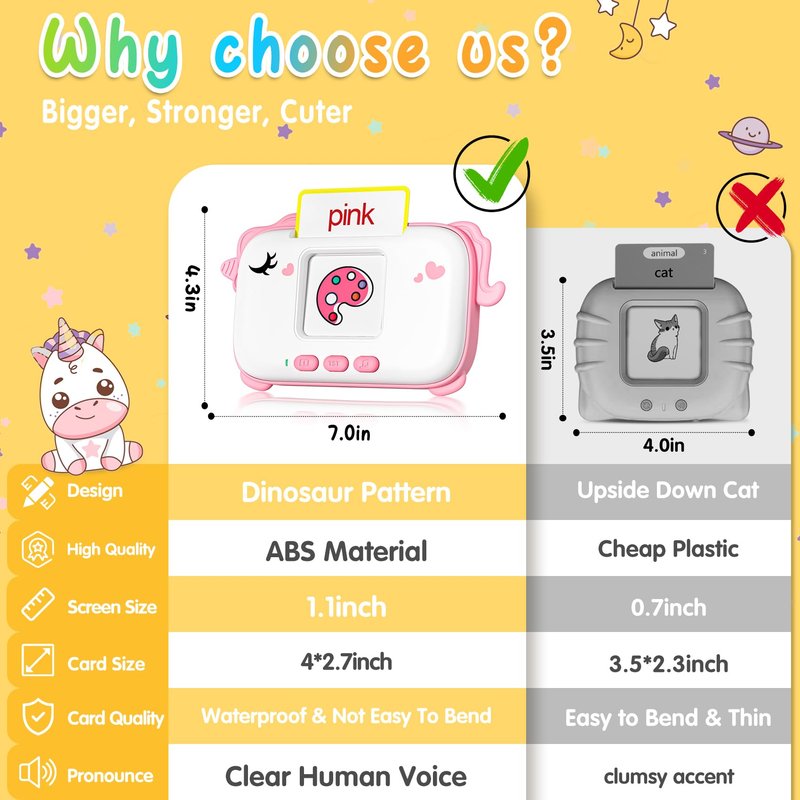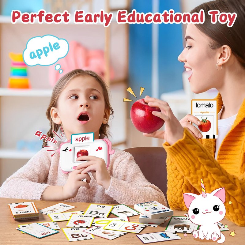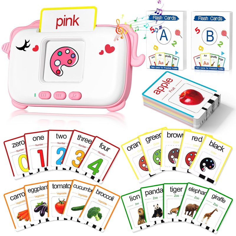 - [Toddler learning toys]: This Toddler learning toy includes a cute unicorn-shaped card reader with 160 visual words. Including fruits, food, marine animals, body parts, colors, animals, farms, transportation, daily necessities, vegetables, shapes, numbers, alphabet, nursery rhymes and other 14 themes. Enhance children's cognitive ability, exercise listening and establish vocabulary for children. Great sensory toys for autistic children.