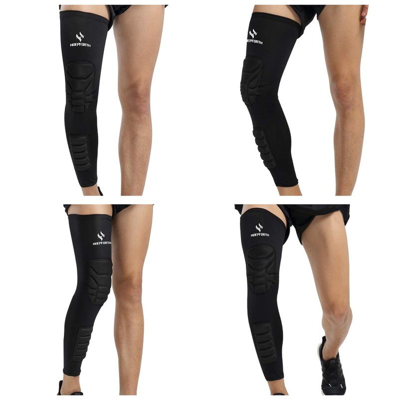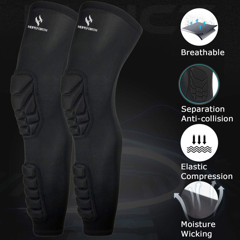 HOPEFORTH Knee Calf Padded 2 Pack Compression Leg Sleeve Thigh Sports Protective Gear Shin Brace Support for Football Basketball Volleyball Soccer Baseball Tennis Adult Youth Kids Pads for Protection. Thickened EVA pads,One Sleeve included Knee padded and Calf padded,The Comfortable padding on an arm sleeve reduces the risk of injury during hard hits or tackles to the ground.
