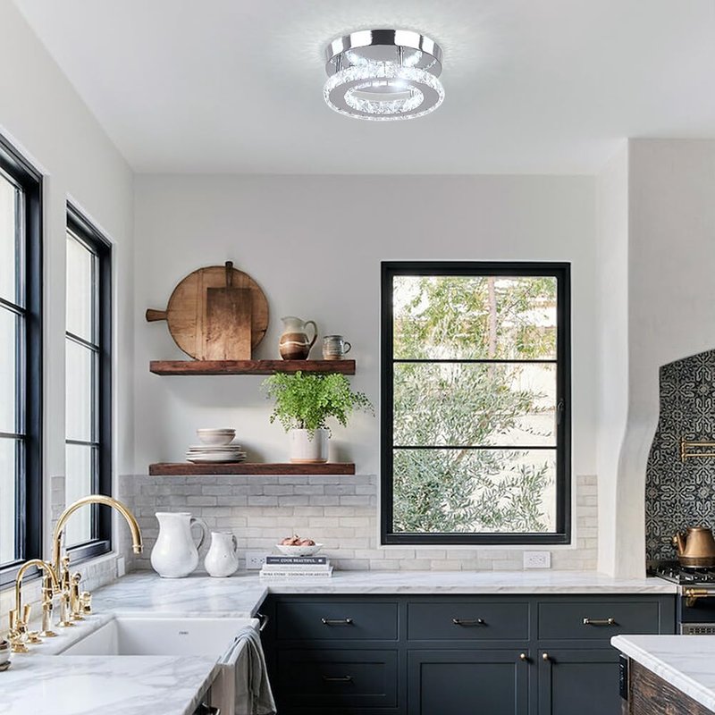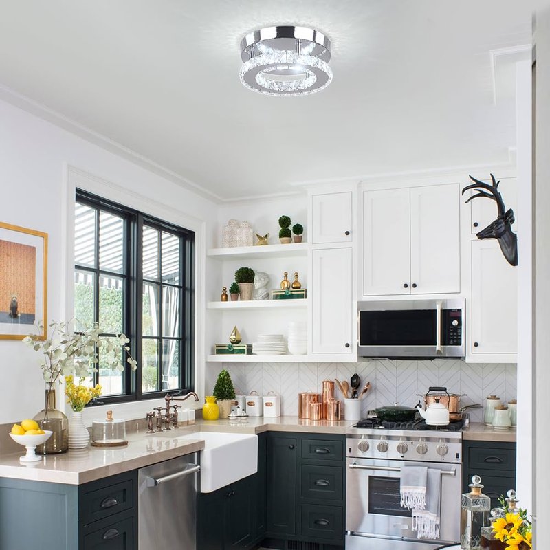 - 【Widely Use】Crystal ceiling lamp is suitable for indoor use, such as living room, bedroom, girls room, kids Room,dining room, kitchen, hotel,foyer,hallway,office
