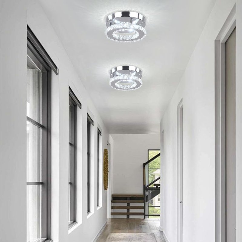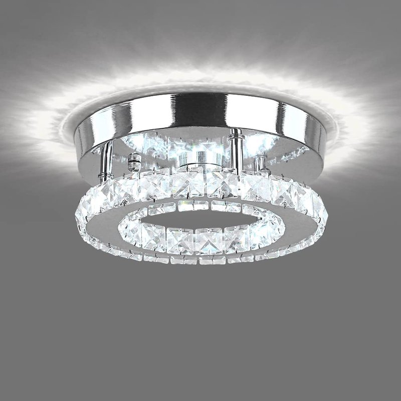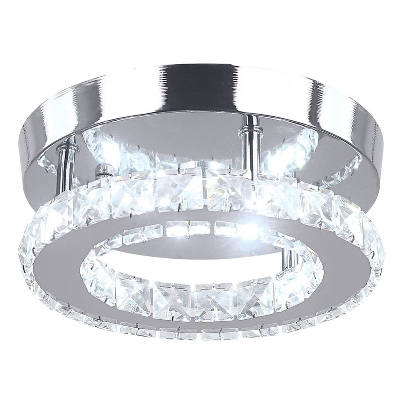 HOPGGIE Modern Crystal Chandelier LED Flush Mount Pendant Lighting Mini Ceiling Light Fixture for Bathroom Bedroom Hallway Staircase Bar Kitchen (Cold White)