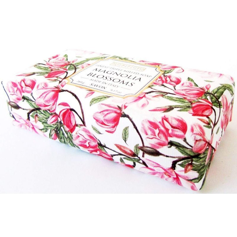 Finest triple milled bar soap. Oversized bar is 9.17 oz. Considered a luxury item, this soap has a rich lather and the amazing fragrance of the magnolia blossom. Comes in pretty floral paper packaging. Made in Italy.