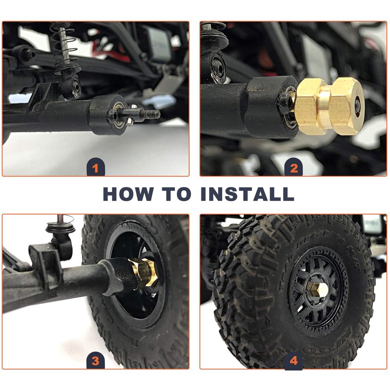 HOPLEX Brass 7mm RC Wheel Hex Hub Spacer with 9.5mm Offset Extension 4Pcs Hex Drive Adapter for AXIAL SCX24 Upgrades Accessories 1/24 RC Crawler Car¡