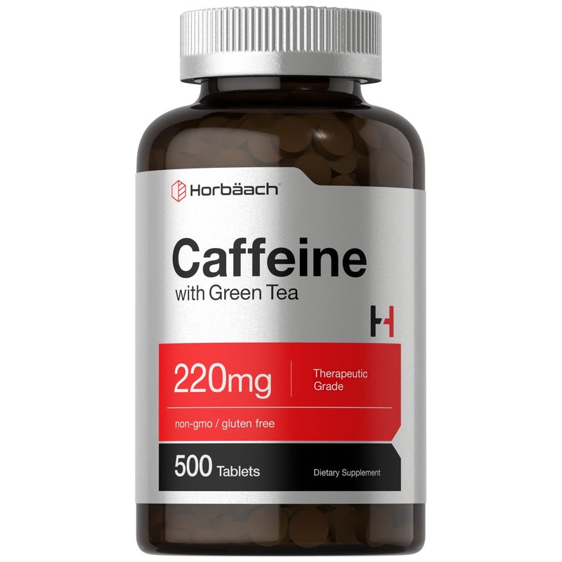 Horbäach Caffeine Pills 200mg with Green Tea | 500 Tablets | Vegetarian, Non-GMO & Gluten Free