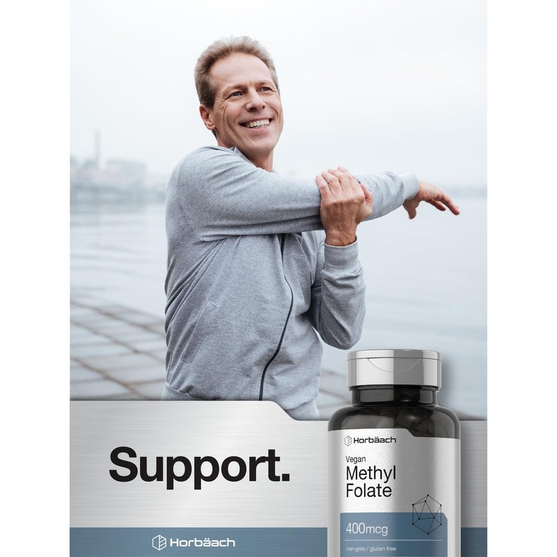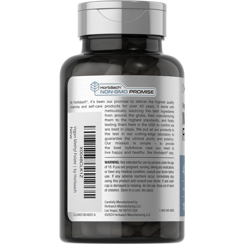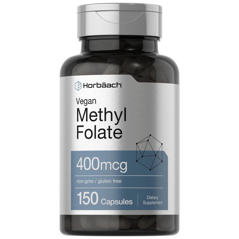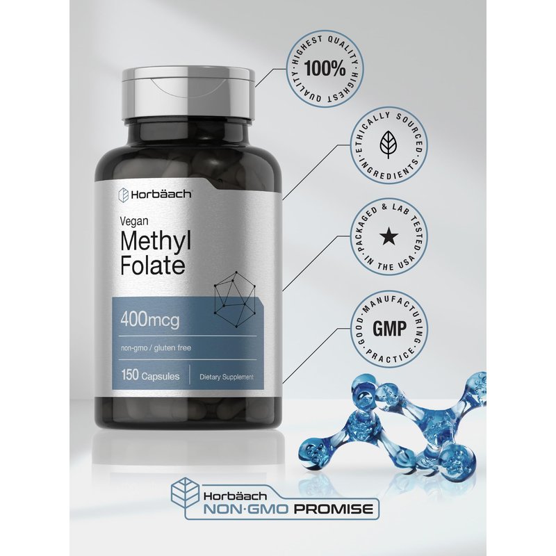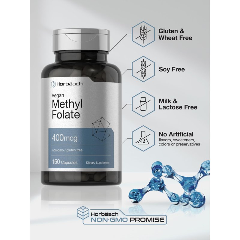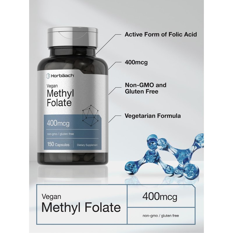 Horbäach Methyl Folate Supplement | 400 mcg | 150 Vegan Capsules | Non-GMO, Gluten Free