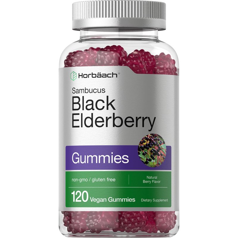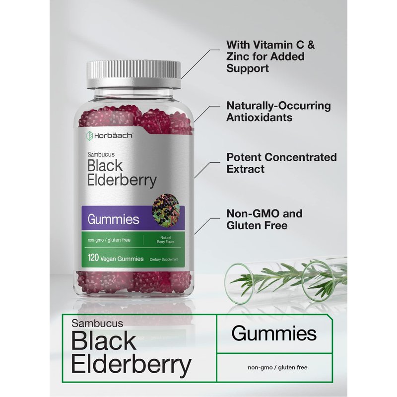 Horbaach Sambucus Black Elderberry Gummies | 120 Count | with Zinc and Vitamin C | Vegan, Non-GMO, Gluten Free Extract for Adults | Natural Berry Flavor