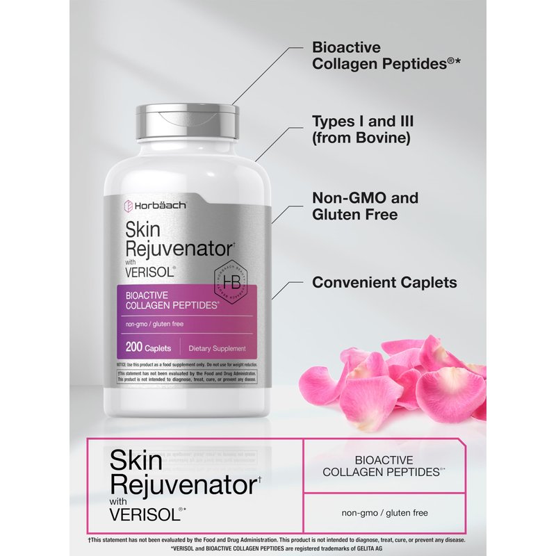 Horbäach Skin Rejuvenator with Verisol | Bioactive Collagen Peptides | 200 Caplets | Non-GMO, Gluten Free Supplement