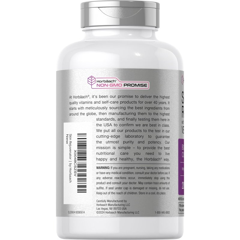 Horbaach has now designed a professional Skin Rejuvenator that stands out from the rest with its premium source of Collagen! Convenient caplets feature 2,500 mg of Verisol Bioactive Collagen Peptides Type I and III (from Bovine) per serving.* Our advanced formula is gluten free and non-GMO, made with no artificial flavor, sweetener or preservatives, making it a top supplement of choice for adults everywhere. Get exceptional value today with our 200-caplet supply!