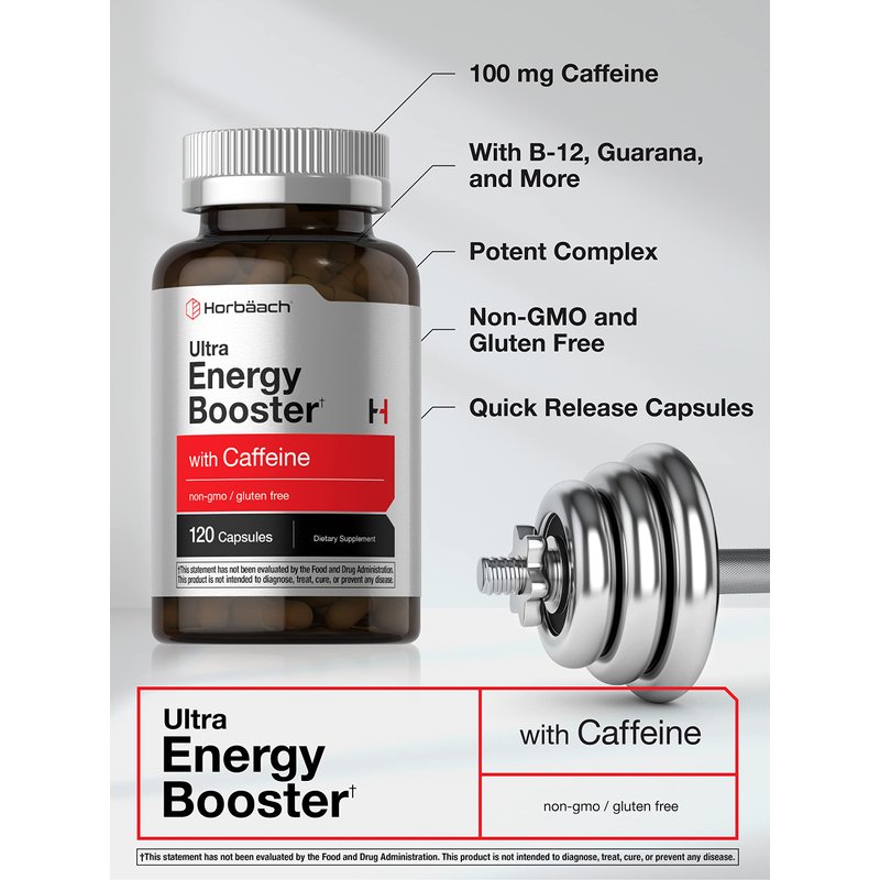 Horbäach Ultra Energy Supplement | 120 Capsule Pills | with Caffeine & Vitamin B12 | Daily Energy Booster | Non-GMO, Gluten Free