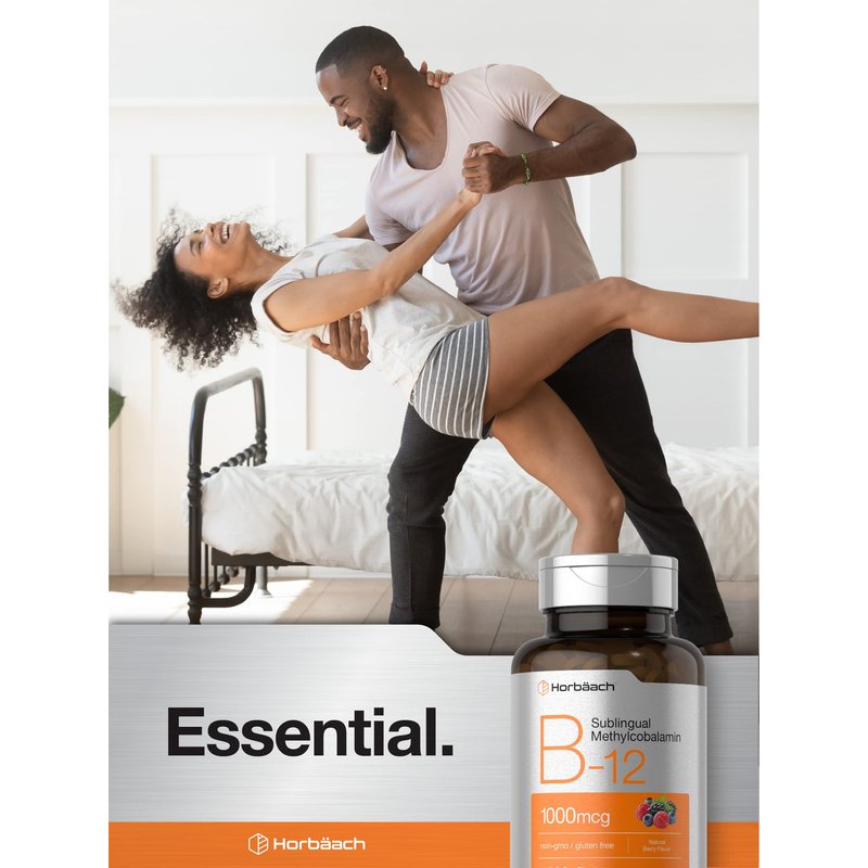 Horbäach Vitamin B12 Sublingual 1000 mcg | 400 Fast Dissolve Tablets | Methylcobalamin Supplement for Adults | Natural Berry Flavor | Vegan, Vegetarian, Non-GMO, and Gluten Free