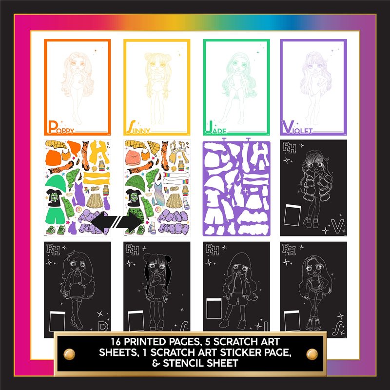 - REVEAL A WORLD OF RH MAGIC: From scratch art to stenciled art, this influencer-approved fashion activity set puts an exciting twist on traditional coloring books that every Rainbow High fan will adore.