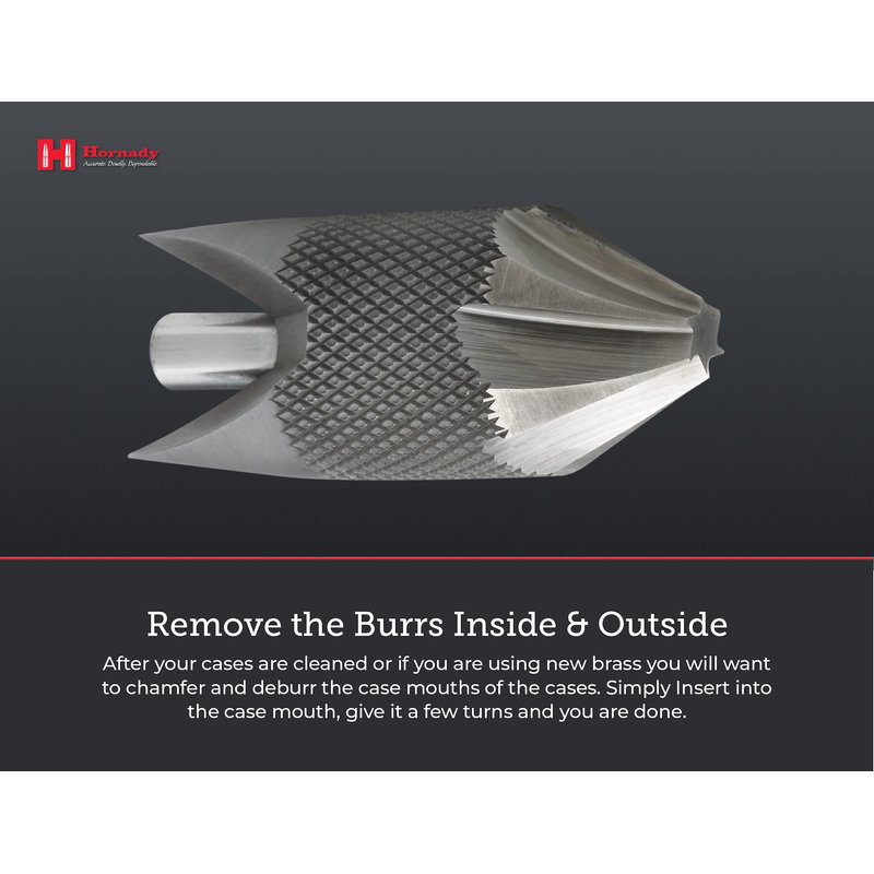 - Remove the Burrs Inside & Outside - when there are sharp edges on your brass after trimming, you need to cut them down inside and out with this deburring chamfer tool