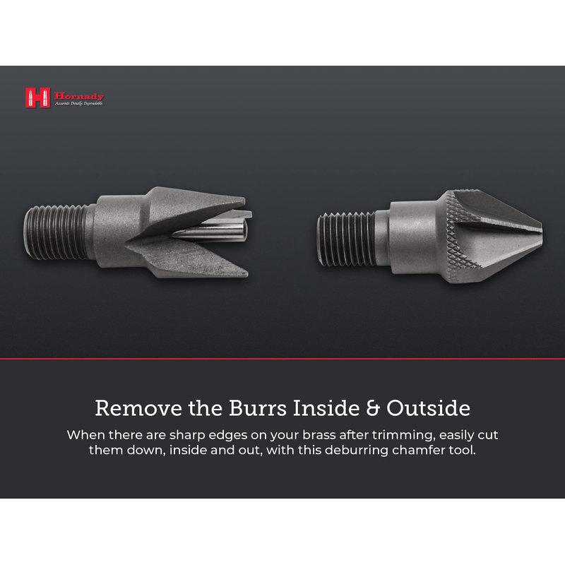 - Remove the Burrs Inside & Outside - when there are sharp edges on your brass after trimming, you need to cut them down inside and out with this deburring chamfer tool