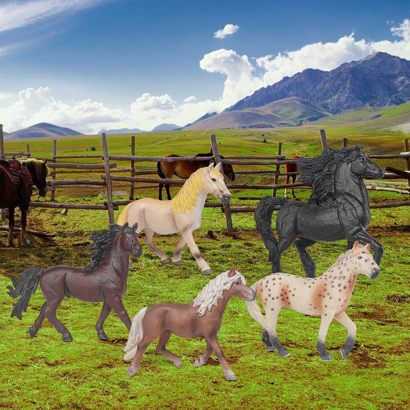 Horse Farm Animal Figures Model Toys Playsets 5 PCS Horse Figurines Family Party Supplies Collection Desktop Decoration Development Set Cognitive Toy for Boys Kid Toddlers