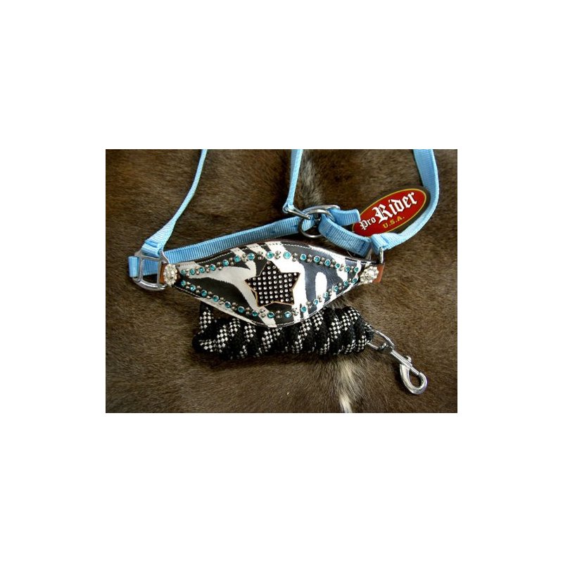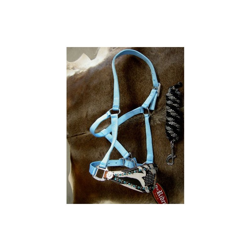 Horse Noseband Tack Bronc Leather Halter Tie Down Lead Rope Turquoise 280102