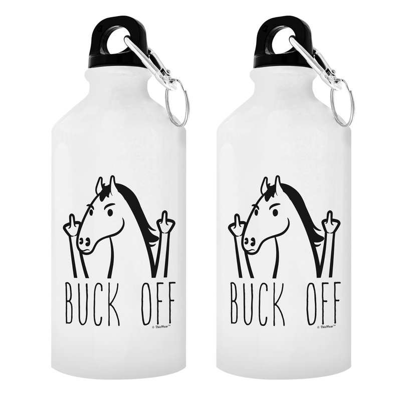 Horse Related Gifts Buck Off Funny Horse Gifts Horse Themed Gifts for Women Horse Gifts for Men Horse Water Bottle Gift 2-Pack Aluminum Water Bottles with Cap & Sport Top White
